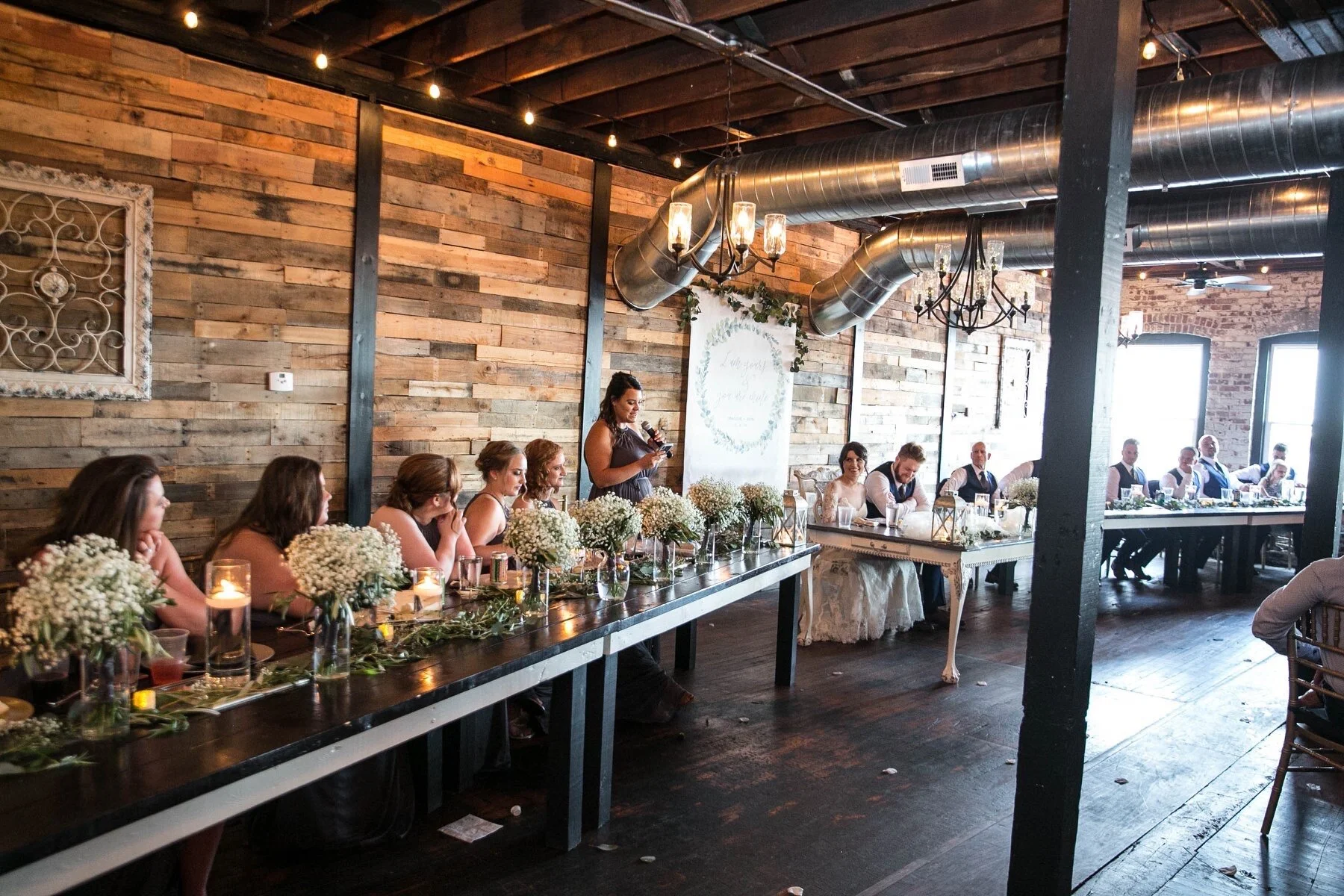 Your Event Space offers over 6500 square feet of uniquely crafted space for you and your guests to enjoy. The open layout with soft industrial lighting, gold chiavari chairs, custom built farm tables and uniquely repurposed furnishings give our Event Center a romantic and intimate feel. This rare combination can be utilized to accommodate vintage, traditional, or contemporary events. We love embracing the creativity of our guests and working together to bring your unique vision to life.